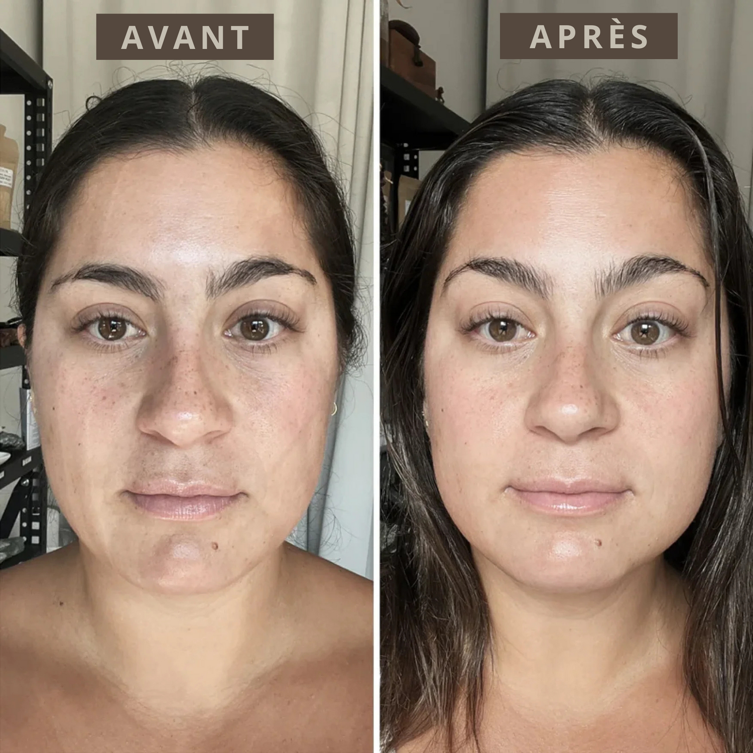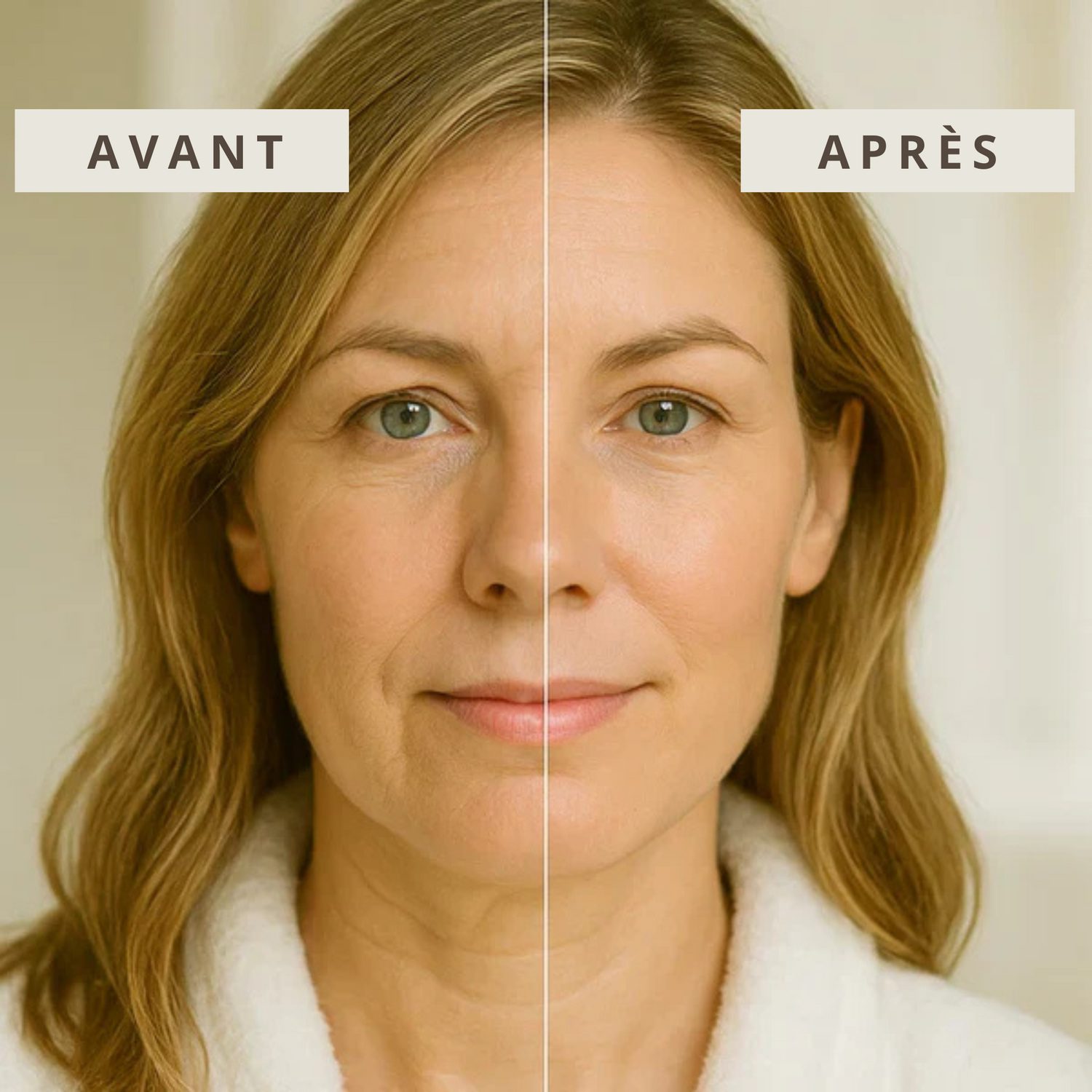 Vos traits se redessinent : pommettes plus sculptées, contour du visage raffermit et regard défatigué.